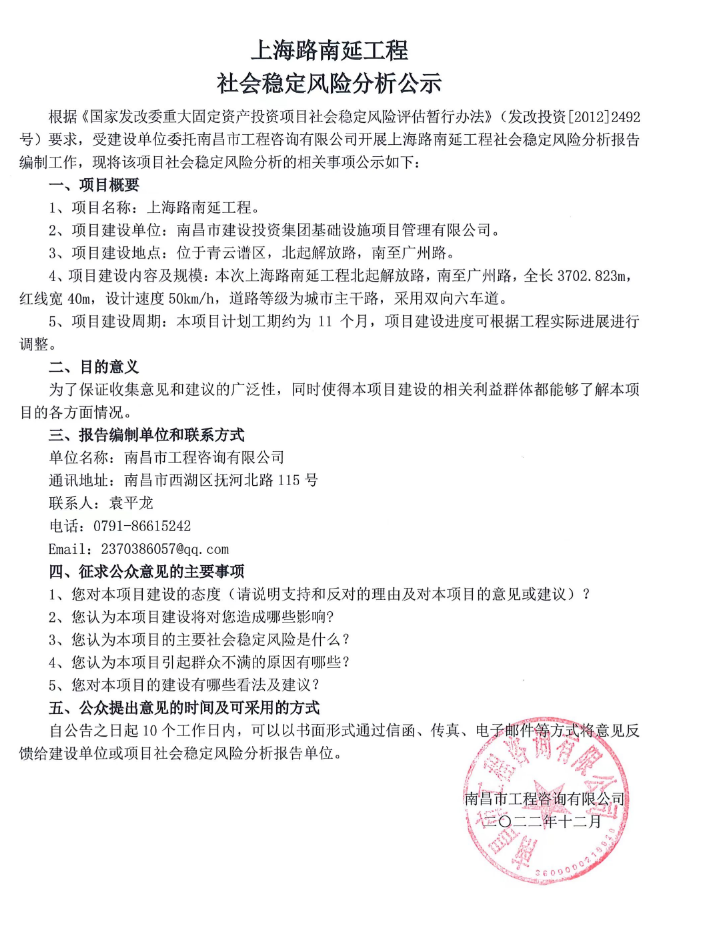 上海路南延工程社会稳定风险分析公示
