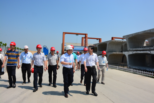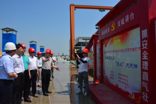 上午10点,周智安一行来到我司梁场生产基地,首先对梁场整体乐鱼(中国)进行了观摩,然后重点参观了基地钢筋车间及宣讲台等地,并与一线生产者们进行了亲切交谈。进入梁场后,周智安一行在钢筋车间门口简单驻足,观看了工业化公司预制梁生产技术宣传片,然后步行穿过了基地的两个钢筋生产车间,仔细观看了基地党员示范牌、“三风”宣传板、安全宣讲台等设施,详细听取了城建工业化公司董事长程志华关于“三风”活动开展和梁场生产情况的介绍,热情询问了公司在“三风”活动乐鱼(中国)、“工匠精神”树立等情况。